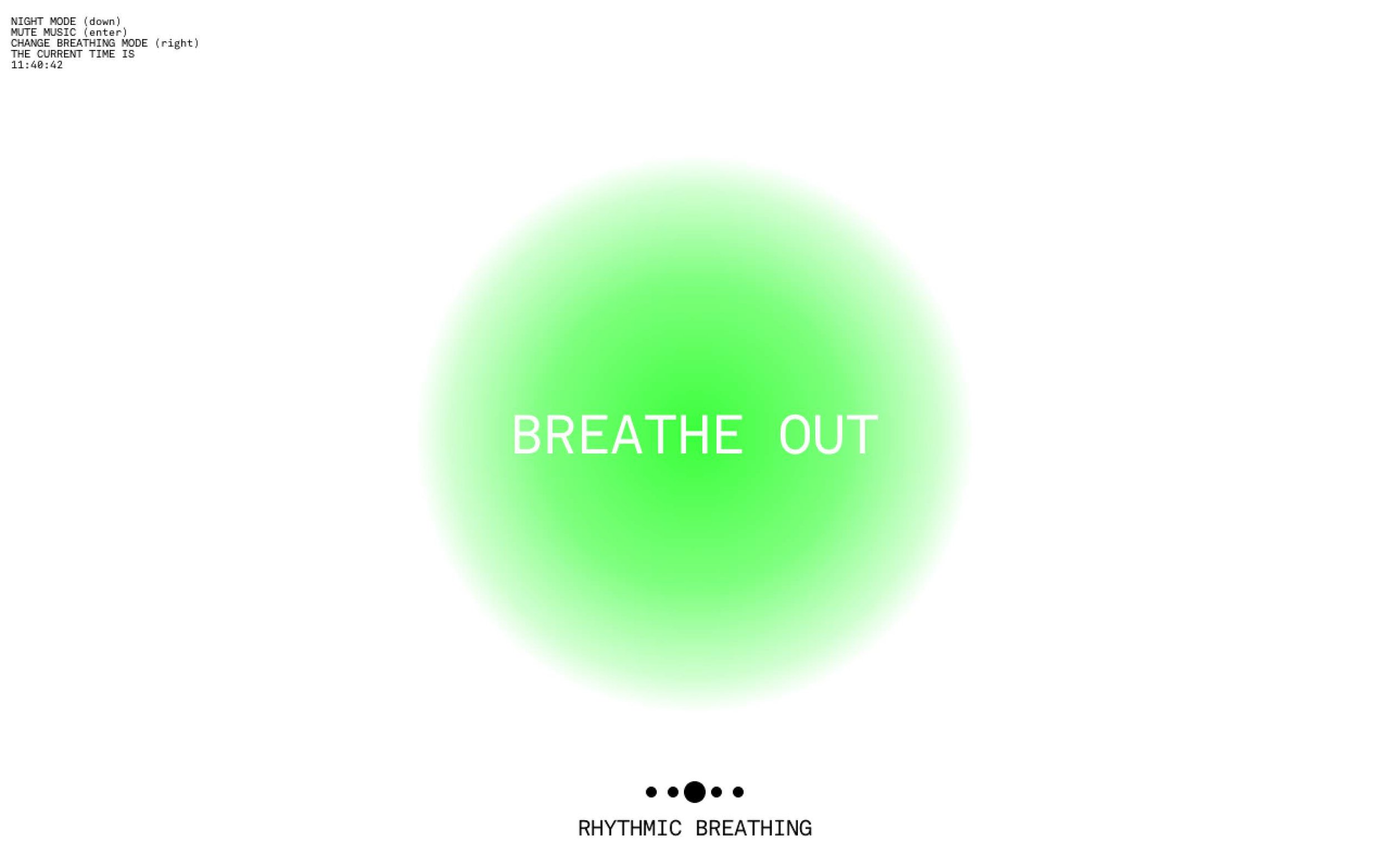 - Inhale/Exhale functions, represented by a growing and shrinking circle, presented in a hue that changes based on the time of day.